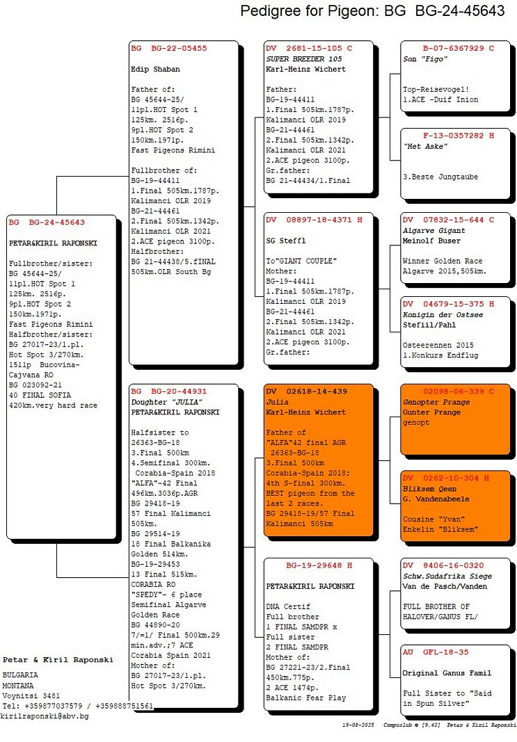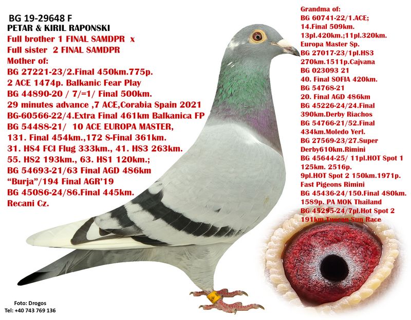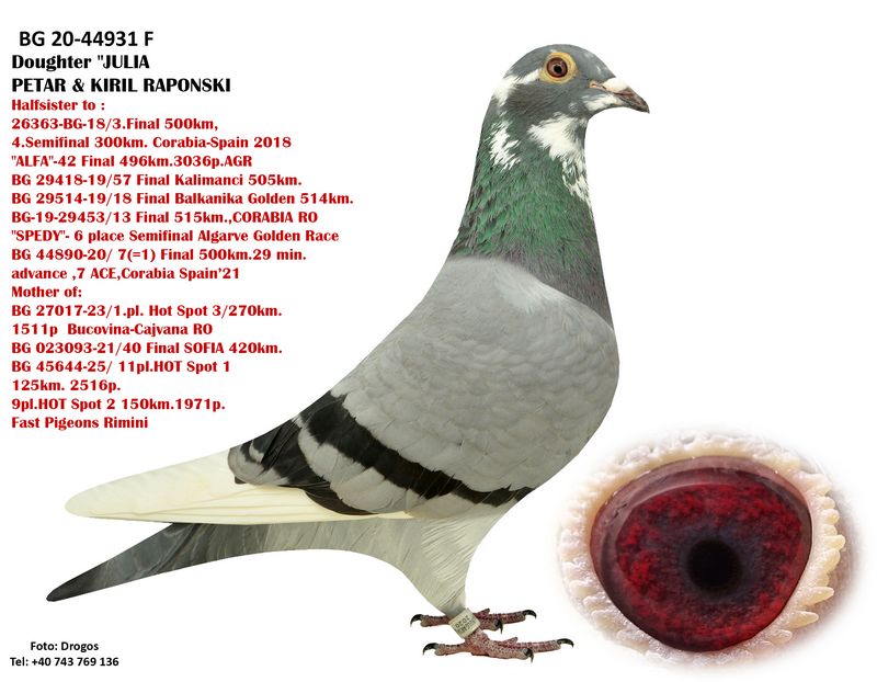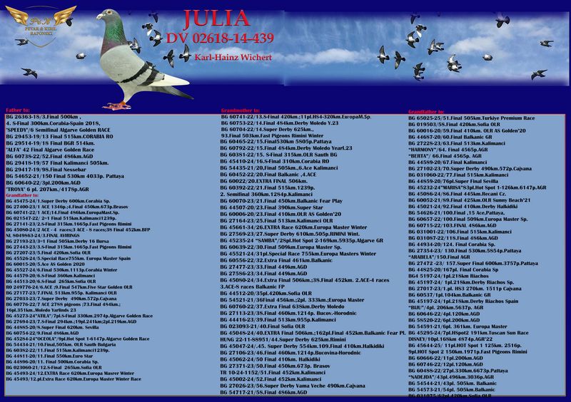BG-24-45643 353-Extra Race-Leon 600 KM 338-Final Race Benavente- 530 Km 162-Semifinal Race-Moraleja-300 Km 499-Race 3-Caceres -230 Km 1034-Race 2-Badajos-162 Km 1267-Race 1-Villanueva del Fresno-105 Km 250-Ace Pigeons