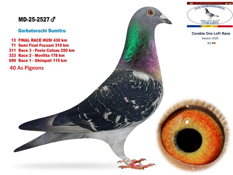 MD-25-2527 13-Final Race Husi-430 km 71-Semifinal Race Focsani-310 km 311-Race 3-Posta Calnau -250 km 333-Race2-Movilita-178 km 699-Race1-Ghimpati-115 km 40-As Pigeons |