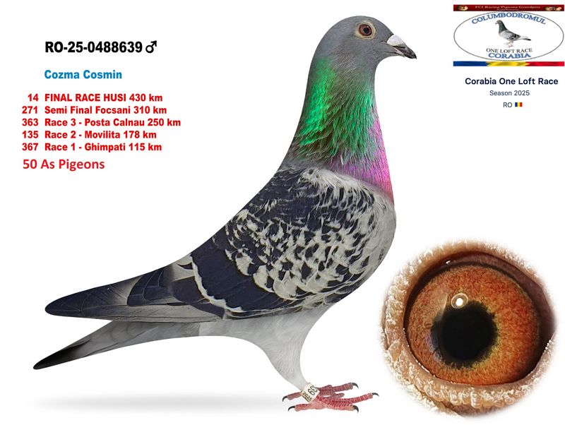 RO-25-0488639 14-Final Race Husi-430 km 271-Semifinal Race Focsani-310 km 363-Race 3-Posta Calnau -250 km 135-Race2-Movilita-178 km 367-Race1-Ghimpati-115 km 50-As Pigeons |