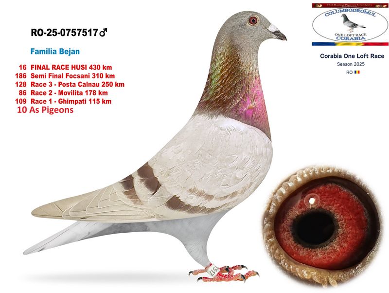 RO-25-0757517 16-Final Race Husi-430 km 186-Semifinal Race Focsani-310 km 128-Race 3-Posta Calnau -250 km 86-Race2-Movilita-178 km 109-Race1-Ghimpati-115 km 10-As Pigeons |