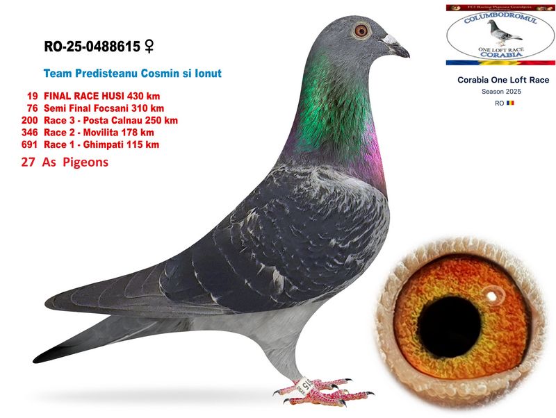 RO-25-0488615 19-Final Race Husi-430 km 76-Semifinal Race Focsani-310 km 200-Race 3-Posta Calnau -250 km 346-Race2-Movilita-178 km 691-Race1-Ghimpati-115 km 27-As Pigeons
