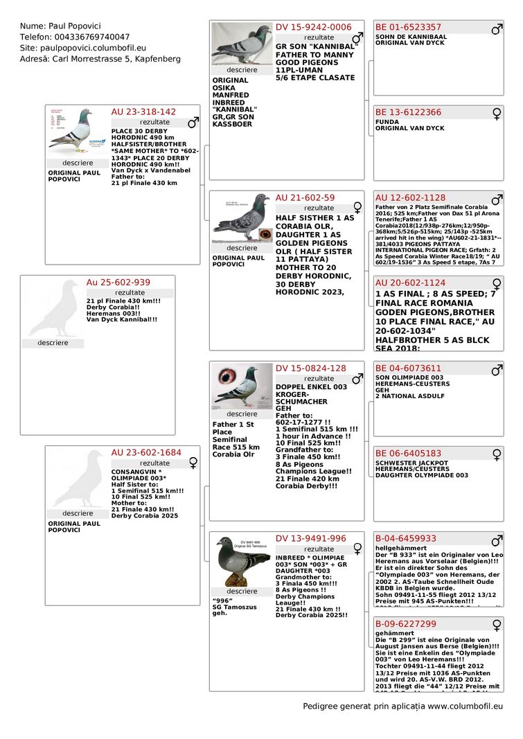 Serie porumbel: Popovici Paul AUS-602-25-939
