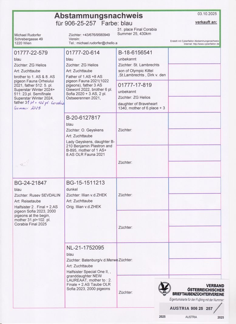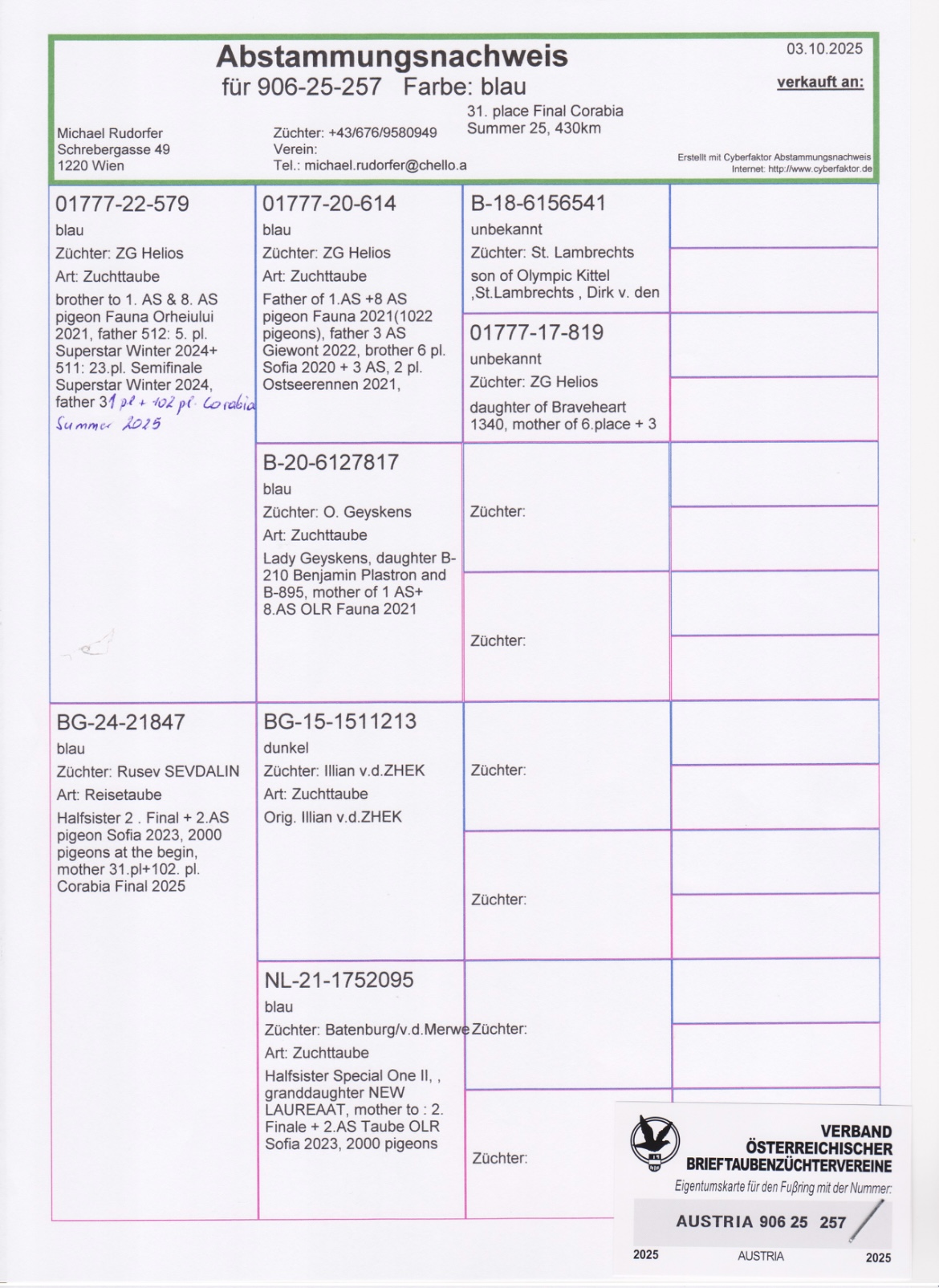 Serie porumbel: Michael Rudorfer AUS-906-25-257
