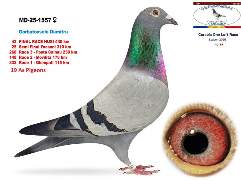 MD-25-1557 42-Final Race Husi-430 km 25-Semifinal Race Focsani-310 km 268-Race 3-Posta Calnau -250 km 149-Race2-Movilita-178 km 332-Race1-Ghimpati-115 km 19-As Pigeons |