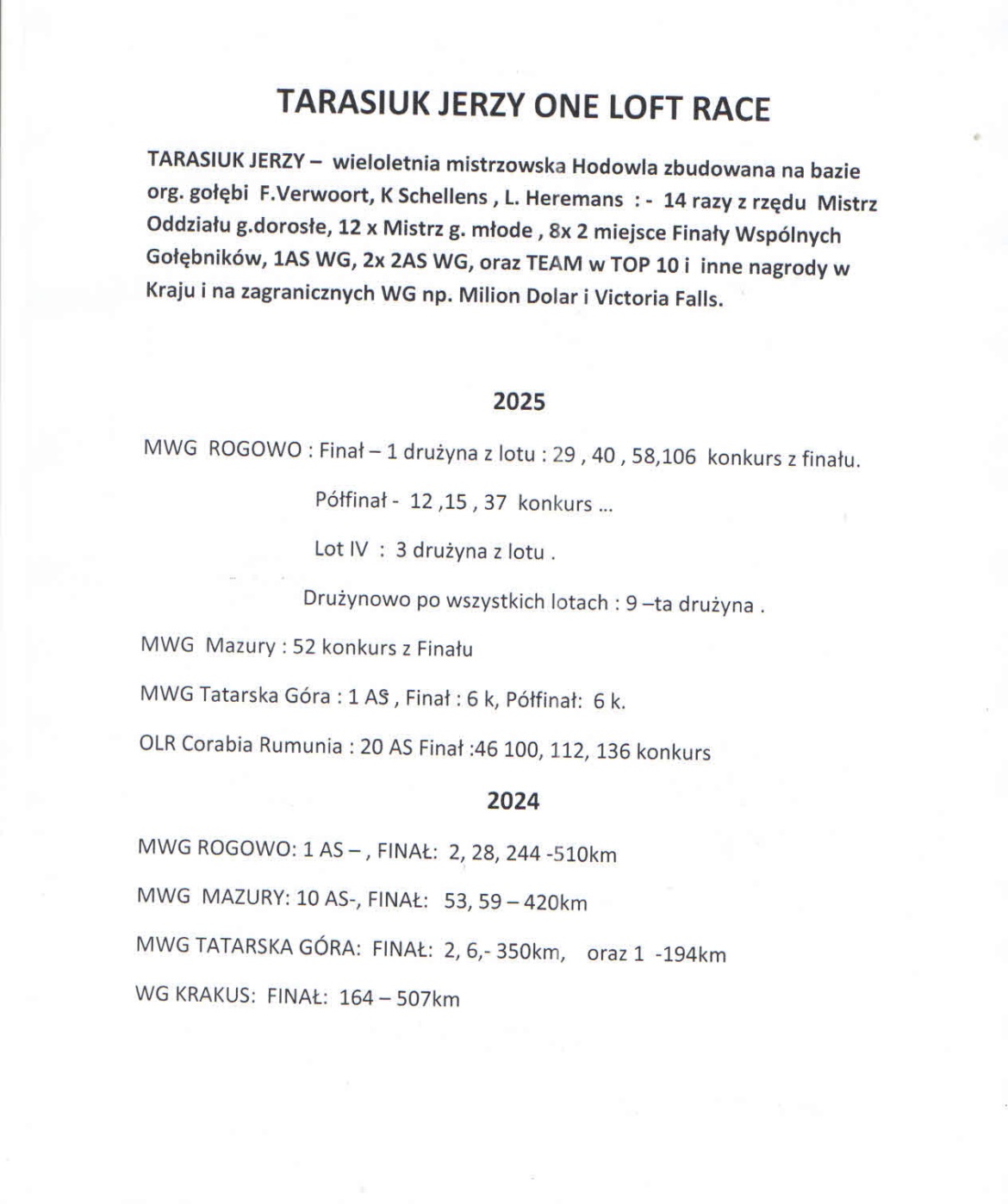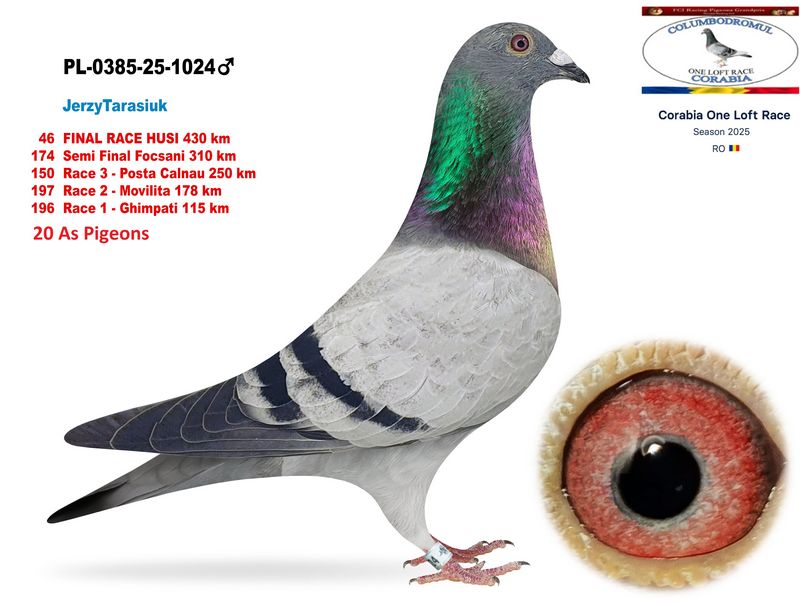 PL-0385-25-1024 46-Final Race Husi-430 km 174-Semifinal Race Focsani-310 km 150-Race 3-Posta Calnau -250 km 197-Race2-Movilita-178 km 196-Race1-Ghimpati-115 km 20-As Pigeons |