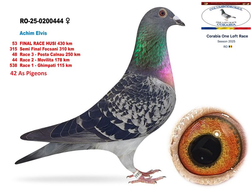 RO-25-0200444 53-Final Race Husi-430 km 317-Semifinal Race Focsani-310 km 48-Race 3-Posta Calnau -250 km 44-Race2-Movilita-178 km 538-Race1-Ghimpati-115 km 42-As Pigeons