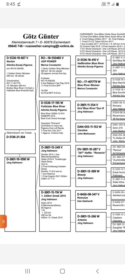 Informatii porumbel (pedigree & fotografii):