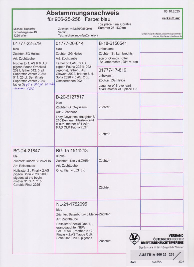 Serie porumbel: Michael Rudorfer AUS-906-25-258
