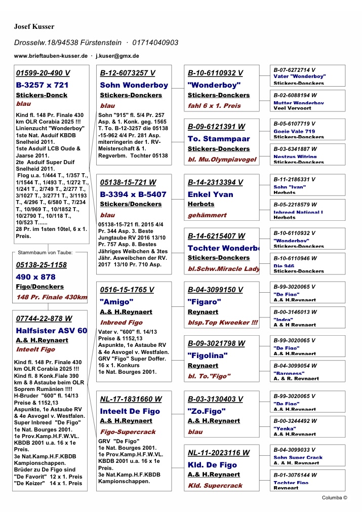 Serie porumbel: Josef Kusser A DV-5138-25-1158