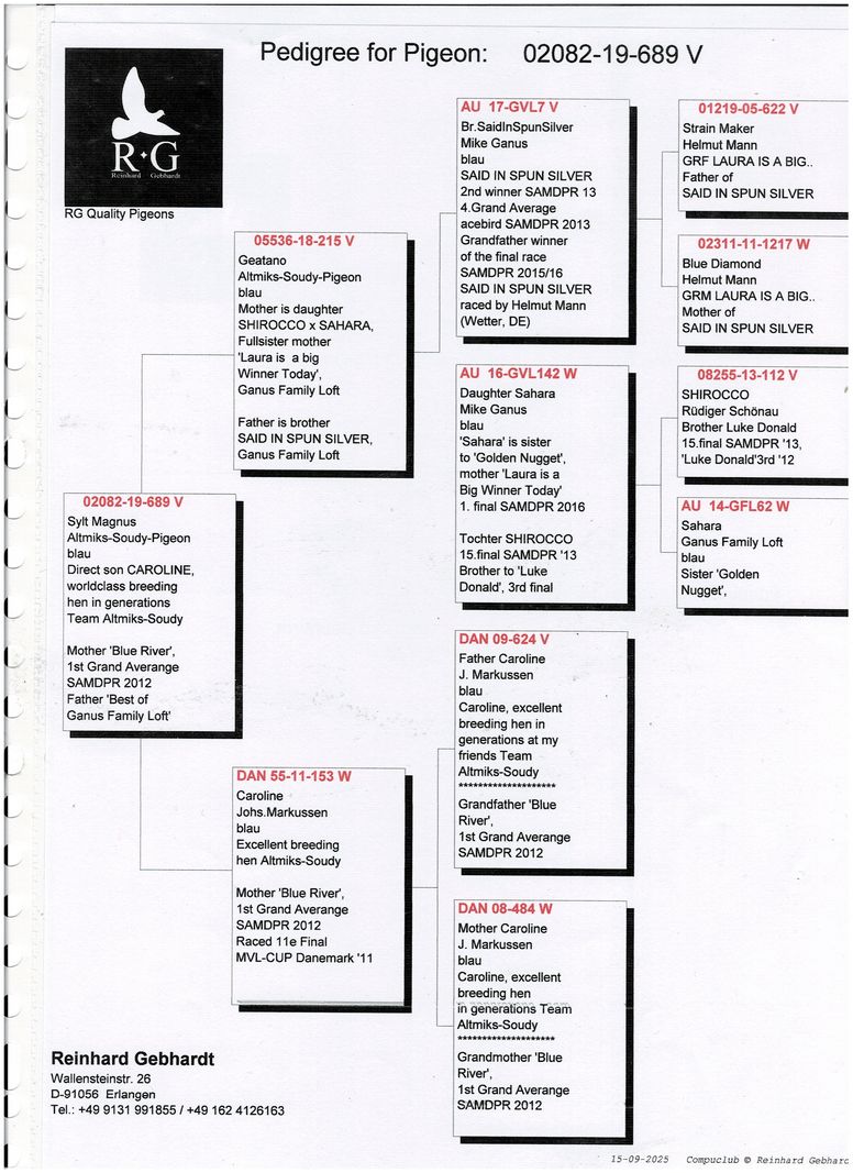 Serie porumbel: DV-02082-19-689 Reinhard Gebhardt