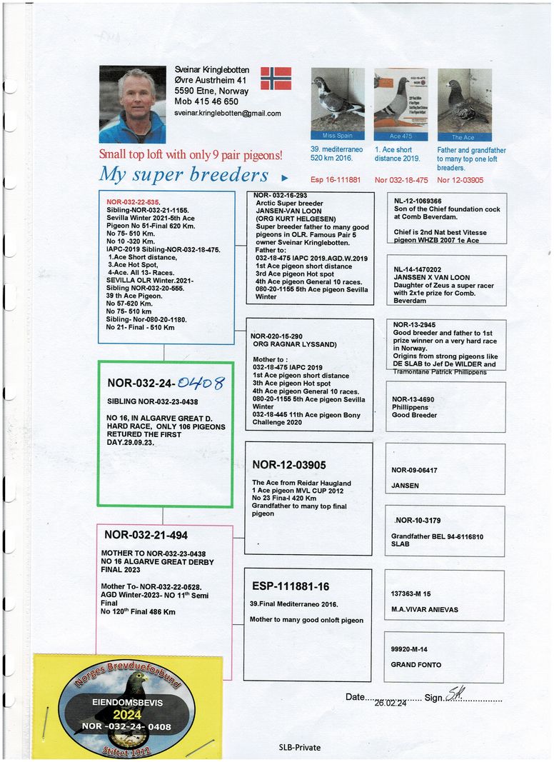 Serie porumbel: NOR-032-24-0408 Sveinar Kringlebotten