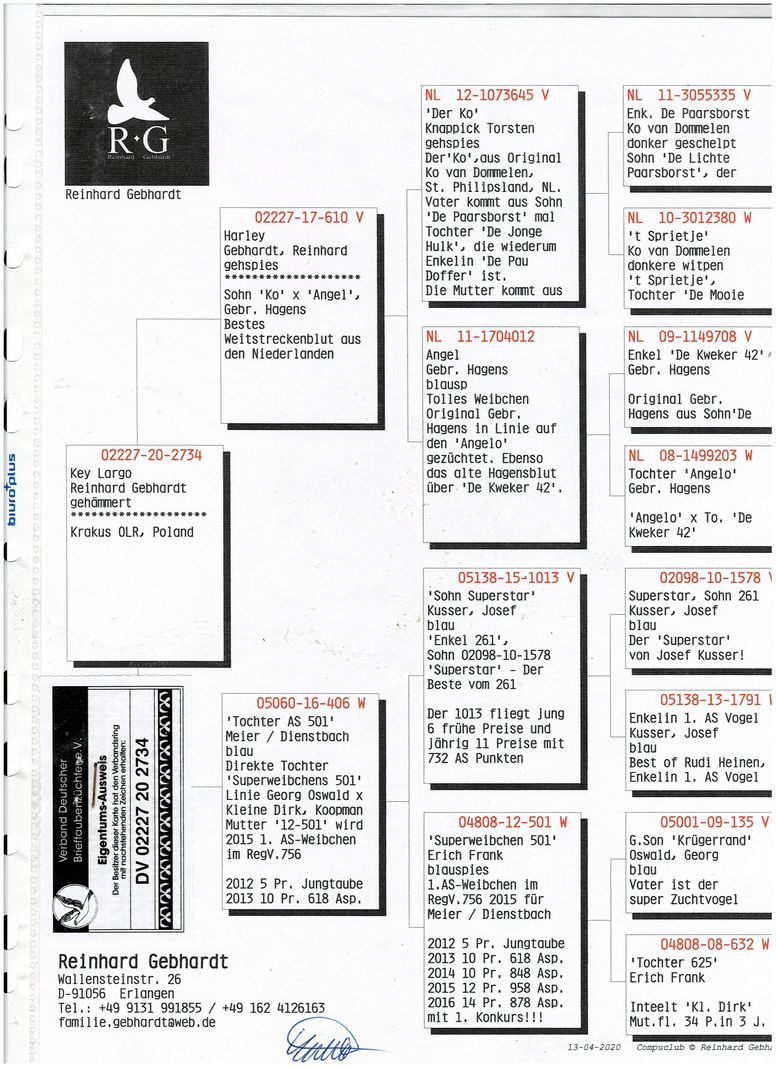 Serie porumbel: DV-0222-20-2734 Reinhard Gebhardt