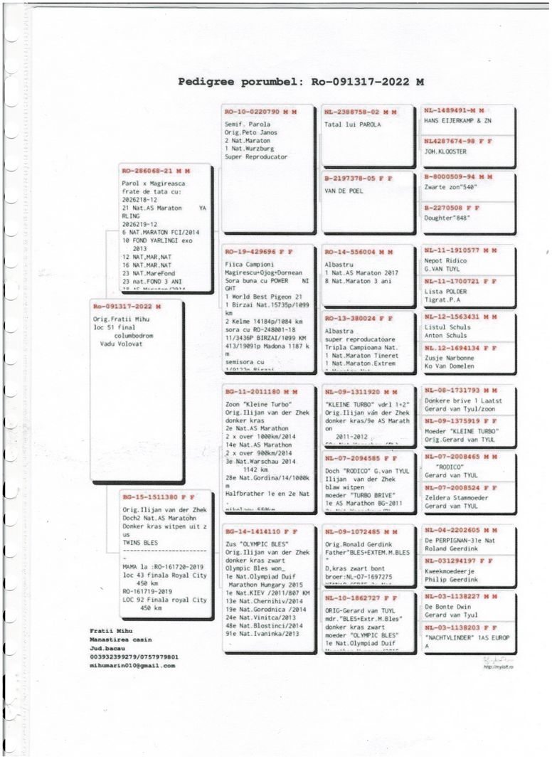Serie porumbel: RO-22-091317 Fratii Mihu