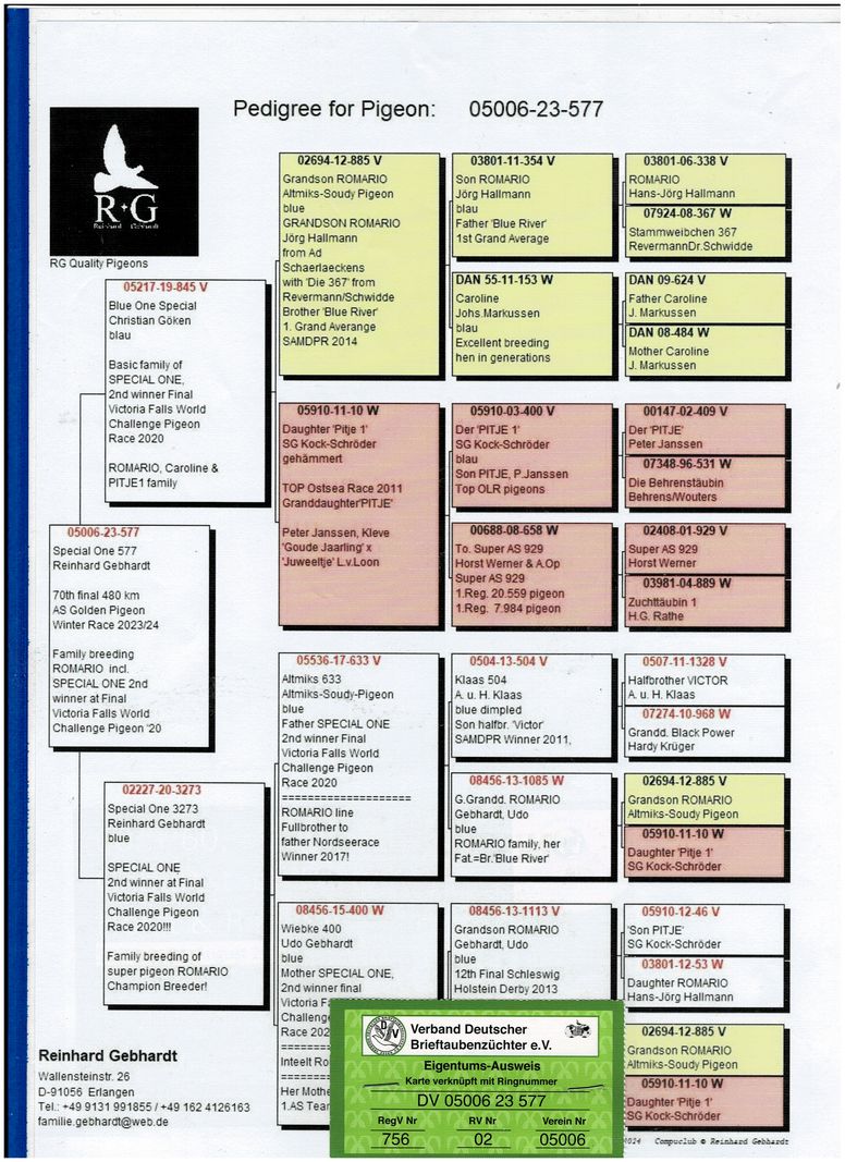 Serie porumbel: DV-05006-23-577 Reinhard Gebhardt