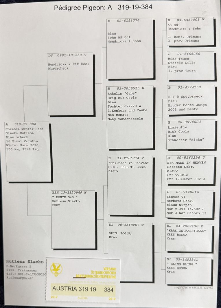 Serie porumbel: AUS-319-19-384 Slavko Kutlesa