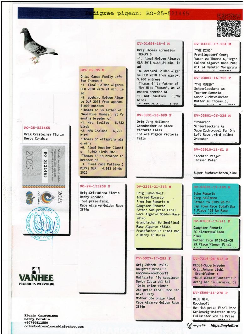 Serie porumbel: RO-25-521465 Original Cristuinea Florin