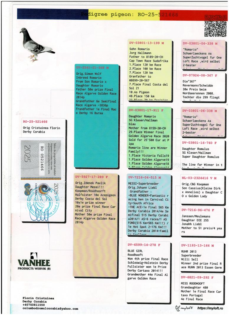 Serie porumbel: RO-25-521466 Original Cristuinea Florin