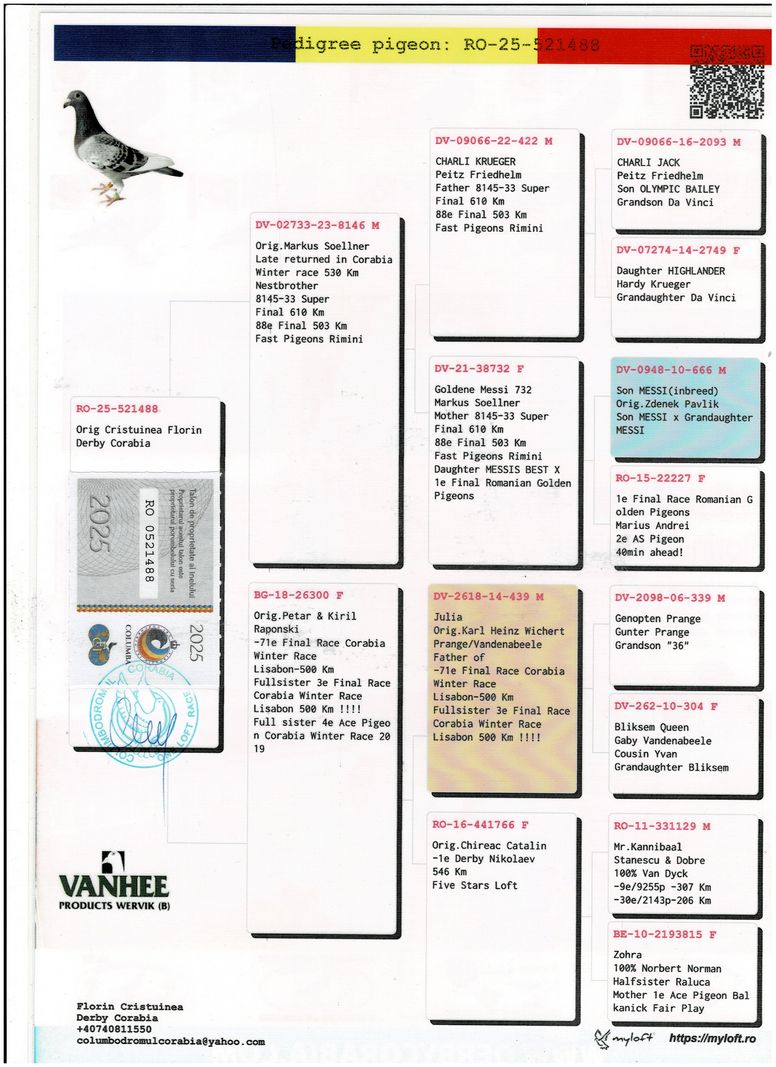 Serie porumbel: RO-25-521488 Original Cristuinea Florin