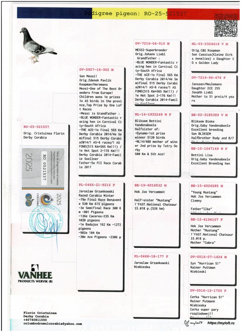 Serie porumbel: RO-25-521537 Original Cristuinea Florin