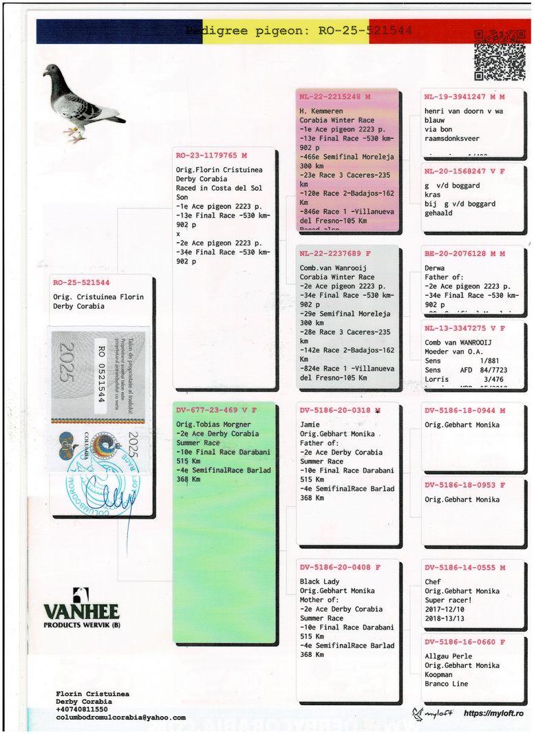 Serie porumbel: RO-25-521544 Original Cristuinea Florin