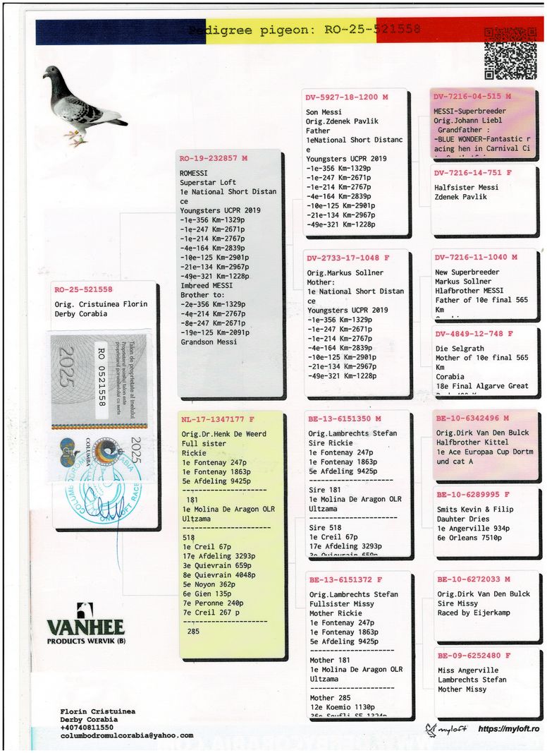Serie porumbel: RO-25-521558 Original Cristuinea Florin