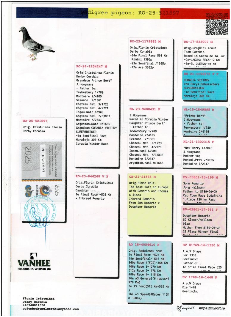 Serie porumbel: RO-25-521597 Original Cristuinea Florin