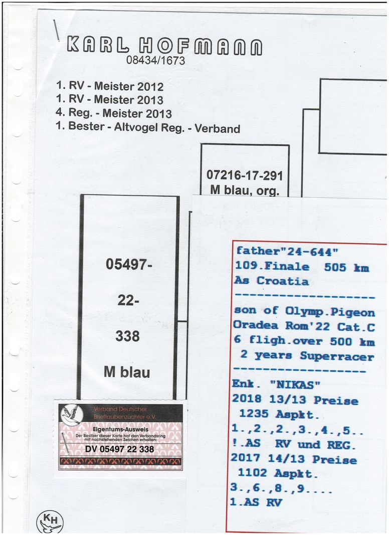 Serie porumbel: DV-05497-22-338 Karl Hofmann