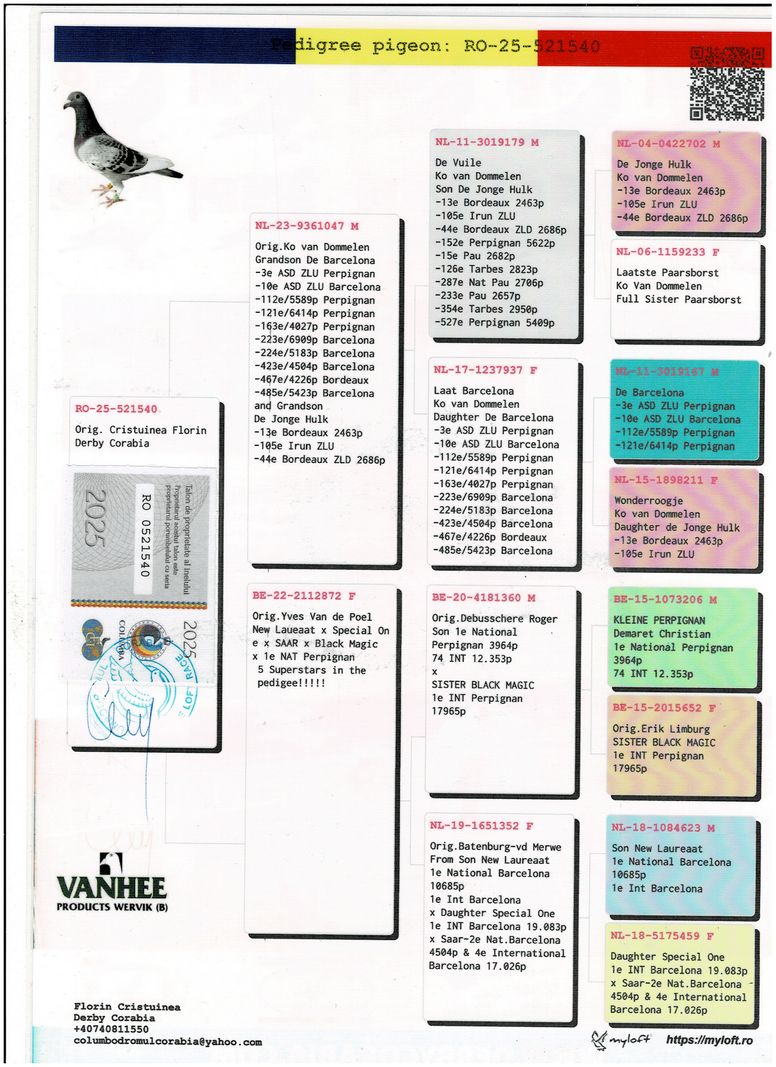 Serie porumbel: RO-25-521540 Original Cristuinea Florin