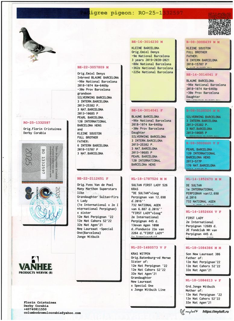 Serie porumbel: RO-25-1332597 Original Cristuinea Florin