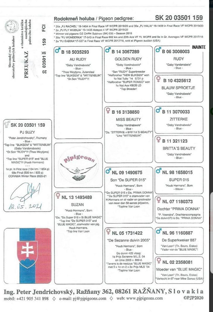 Serie porumbel: SK-03501-20-159 PETER JENDRICHOVSKY