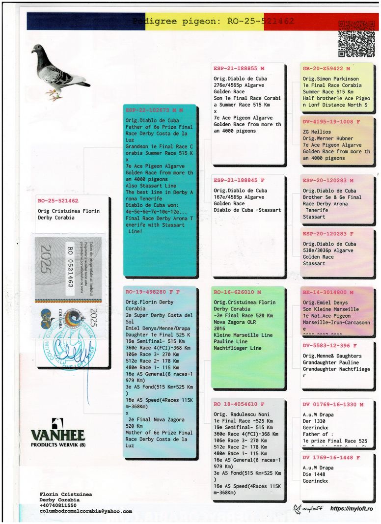 Serie porumbel: RO-25-521462 Original Cristuinea Florin