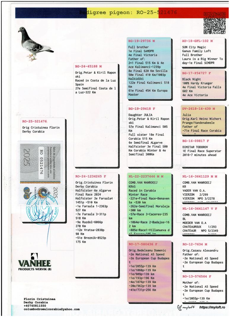 Serie porumbel: RO-25-521476 Original Cristuinea Florin