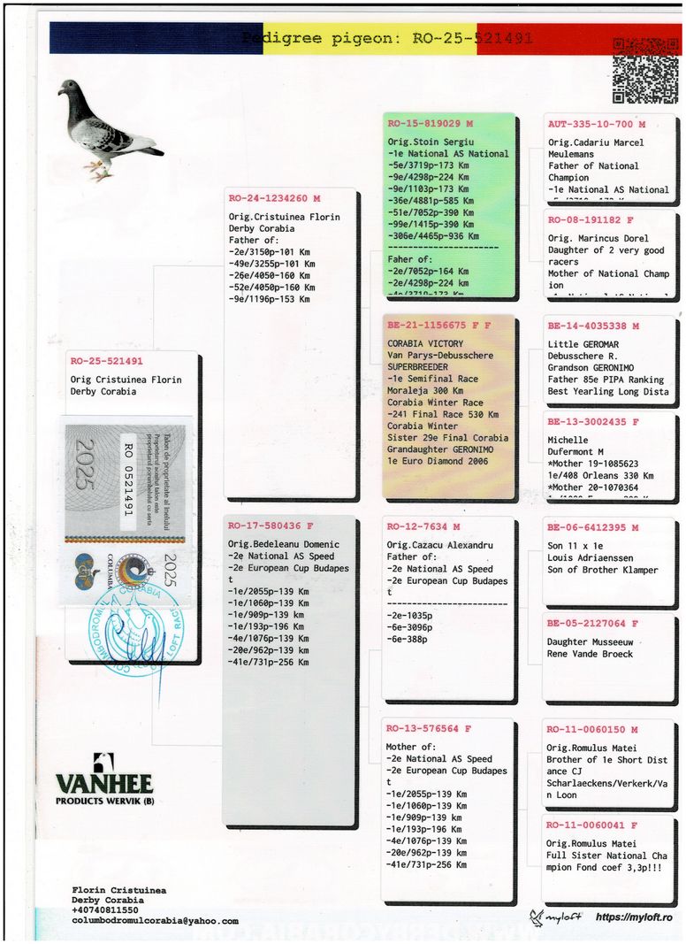 Serie porumbel: RO-25-521491 Original Cristuinea Florin