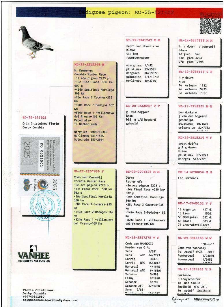 Serie porumbel: RO-25-521502 Original Cristuinea Florin