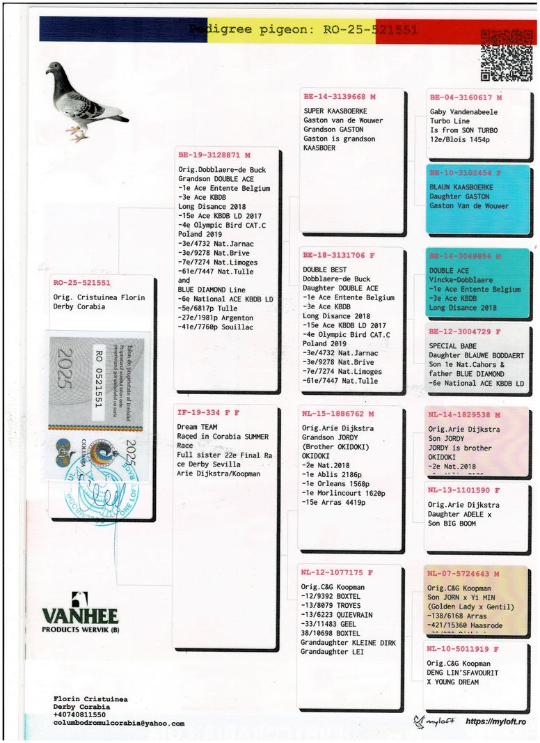 Serie porumbel: RO-25-521551 Original Cristuinea Florin