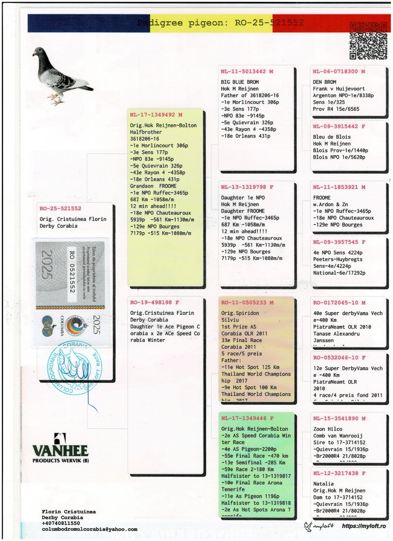 Serie porumbel: RO-25-521552 Original Cristuinea Florin