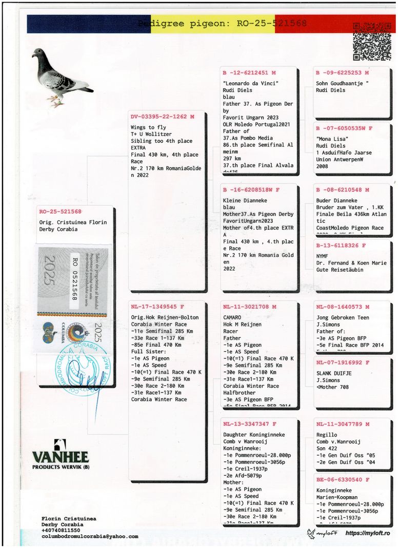 Serie porumbel: RO-25-521568 Original Cristuinea Florin