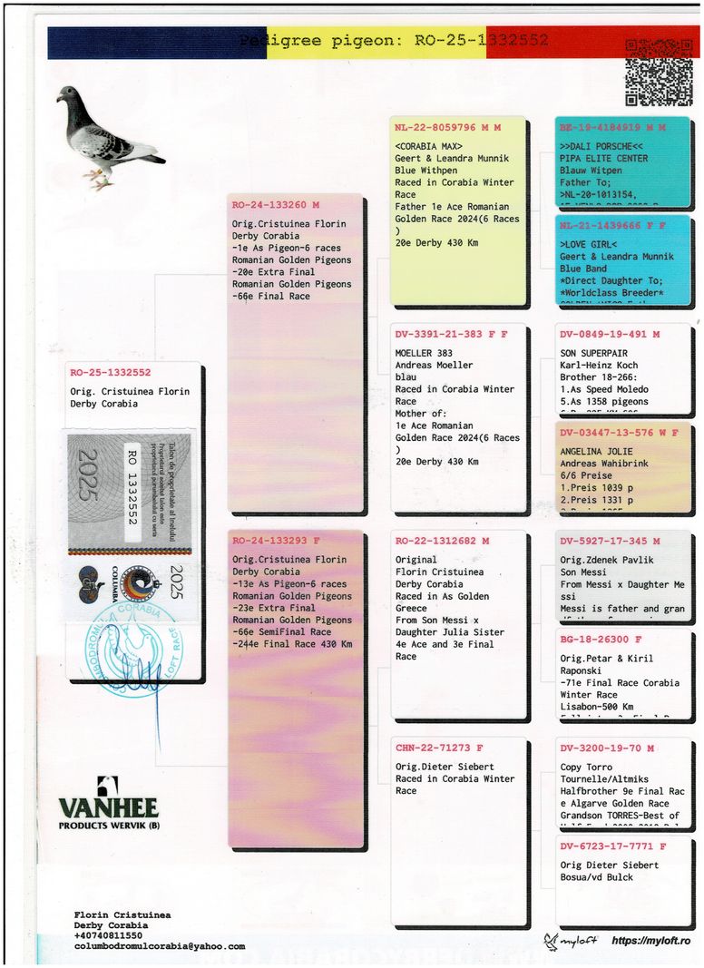 Serie porumbel: RO-25-1332552 Original Cristuinea Florin