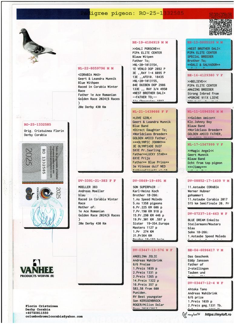 Serie porumbel: RO-25-1332585 Original Cristuinea Florin