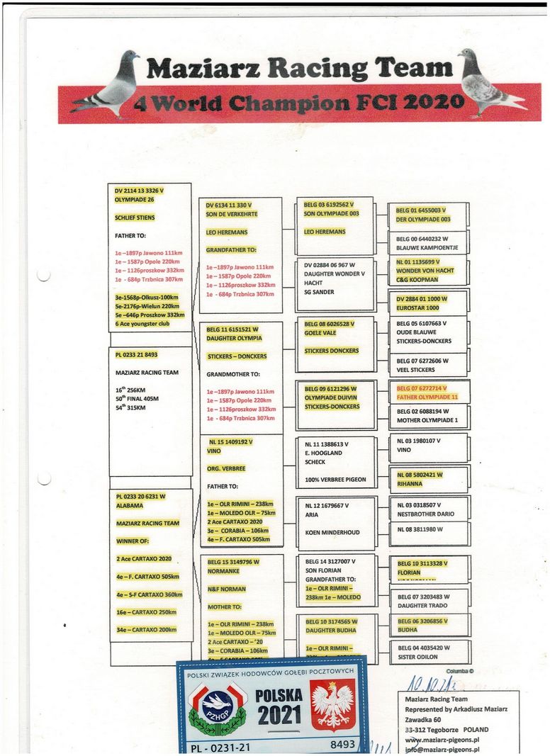 Serie porumbel: PL-0231-21-8493 Maziarz Racing Team