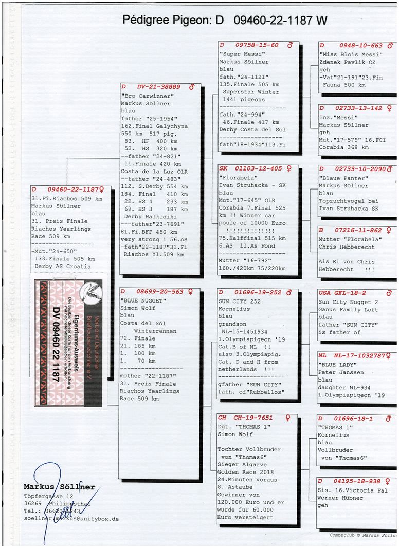 Informatii porumbel (pedigree & fotografii):