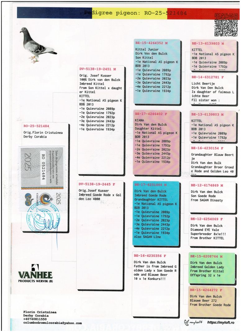 Serie porumbel: RO-25-521484 Original Cristuinea Florin