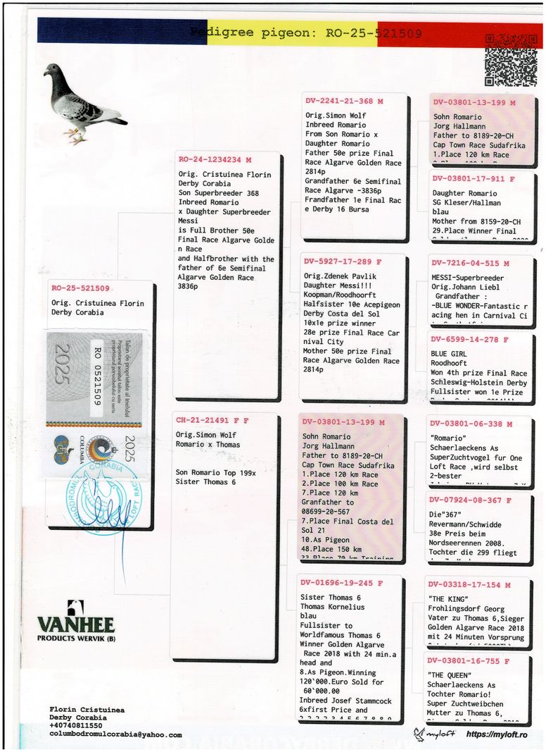 Serie porumbel: RO-25-521509 Original Cristuinea Florin