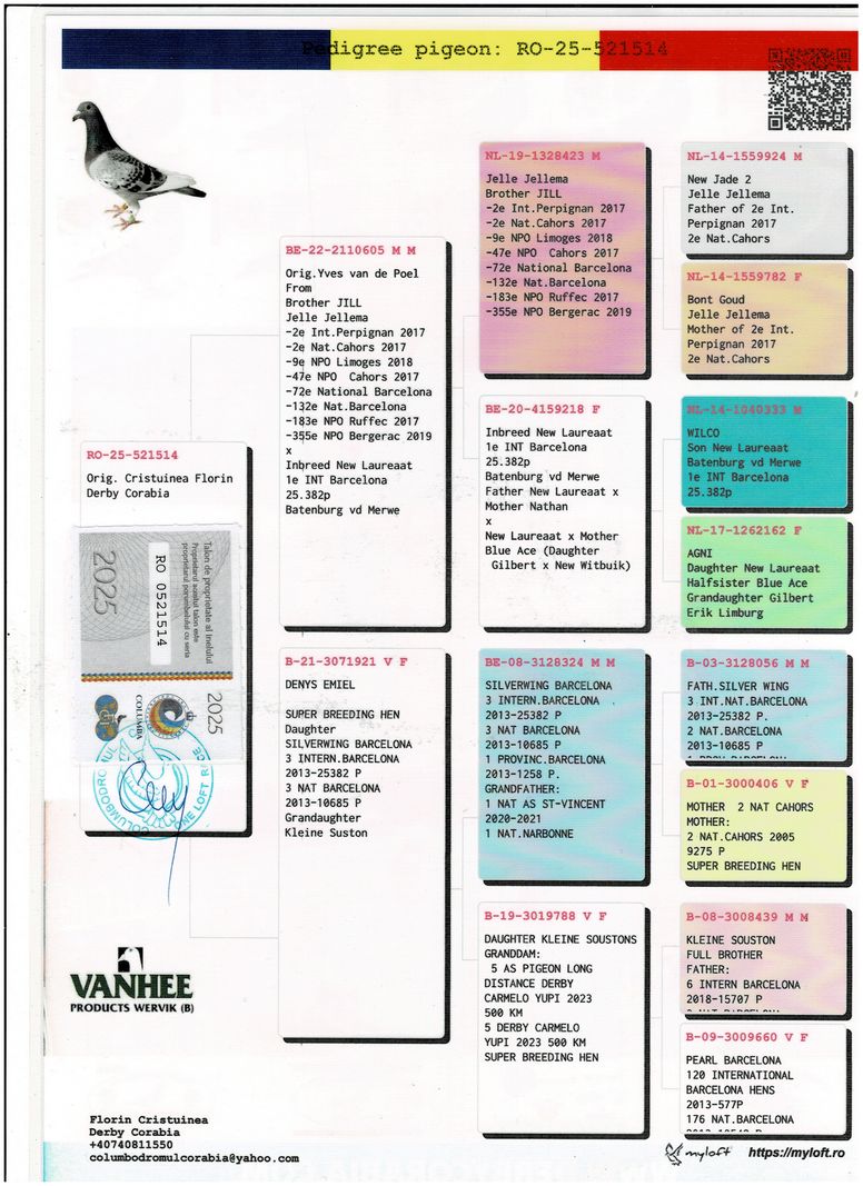 Serie porumbel: RO-25-521514 Original Cristuinea Florin