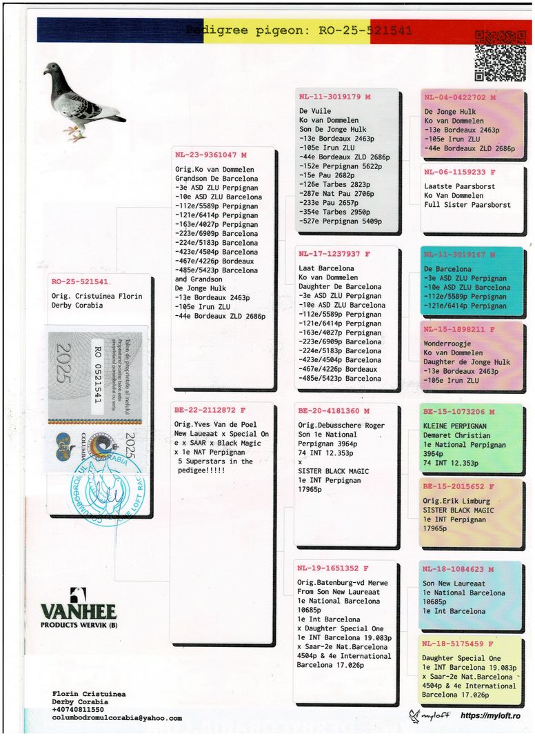 Serie porumbel: RO-25-521541 Original Cristuinea Florin