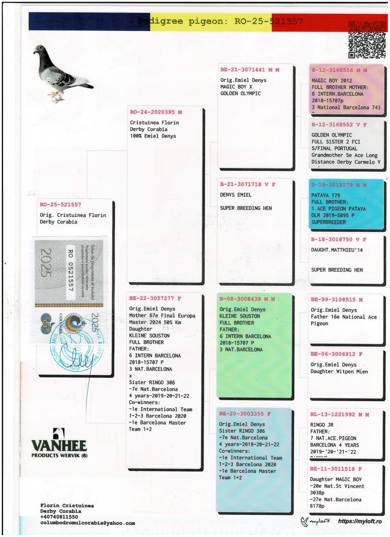 Serie porumbel: RO-25-521557 Original Cristuinea Florin