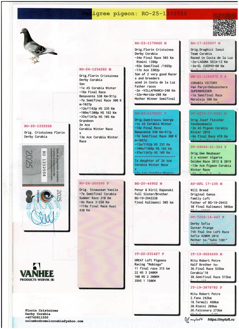 Serie porumbel: RO-25-1332558 Original Cristuinea Florin