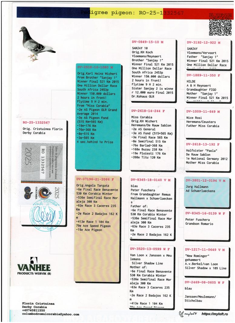 Serie porumbel: RO-25-1332567 Original Cristuinea Florin