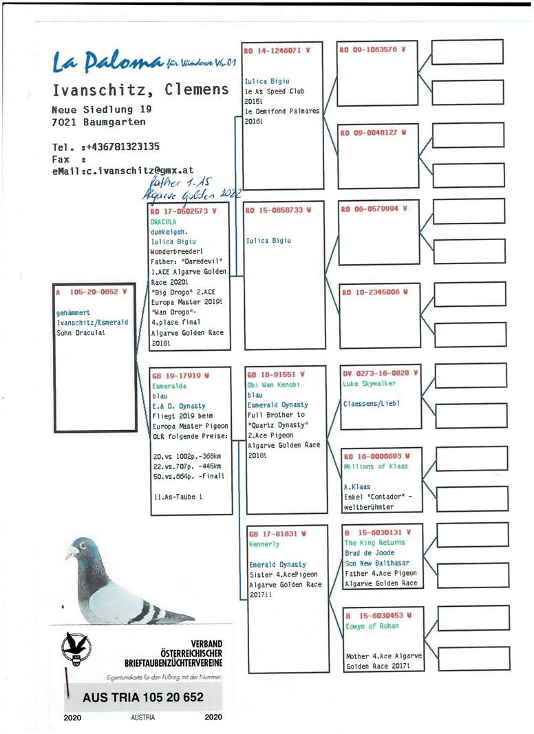 Serie porumbel: AUS-105-20-0652 Ivanschitz ,Clements