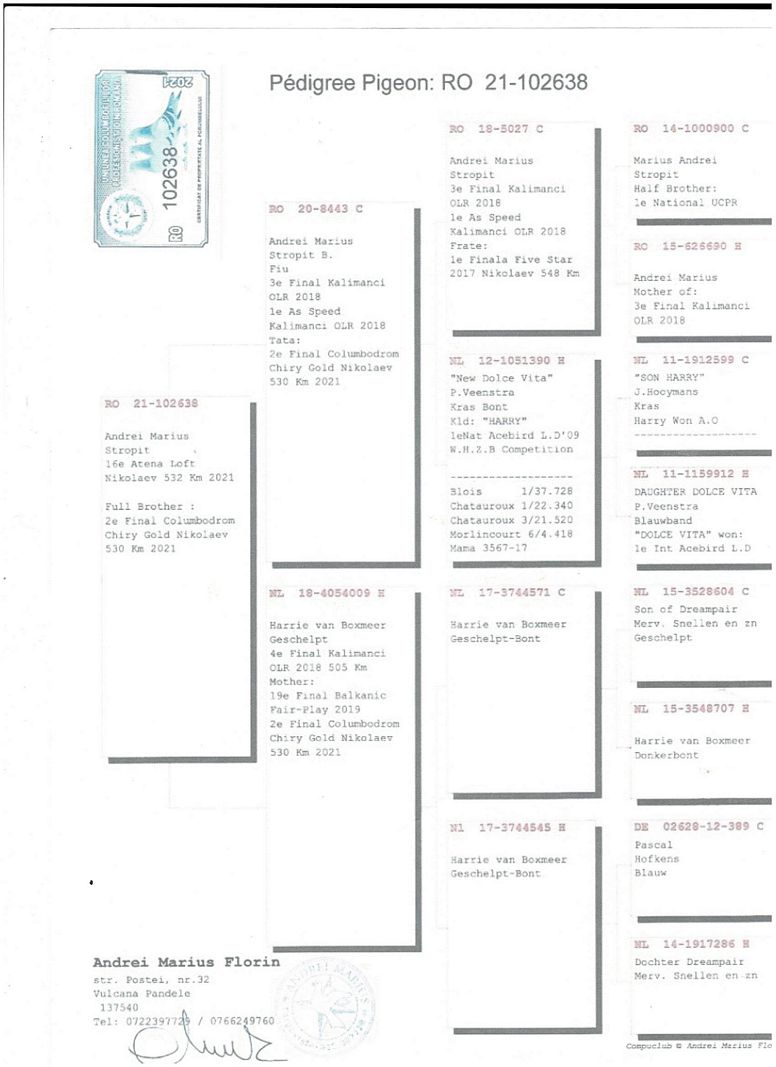 Serie porumbel: RO-21-102638 Andrei Marius Florin